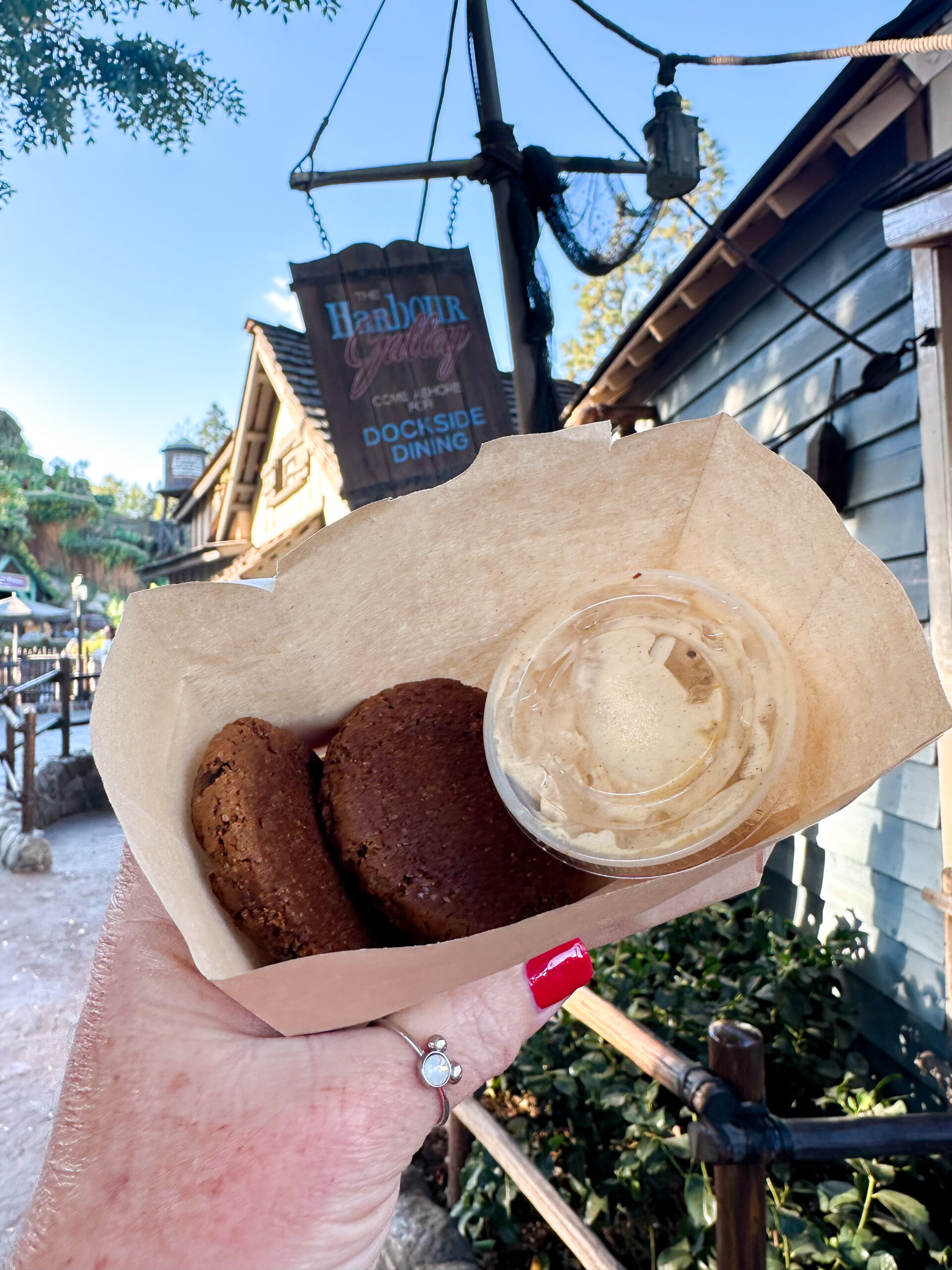 The Mickey Gingerbread cookie is a soft gingerbread cookie found at several locations. And let me tell you he’s a popular guy and will run out at many locations, but check back in the afternoon for a restock. Here are the locations where to purchase… at Jolly Holiday (mobile order in the morning) and Market House in Disneyland. Then over in DCA at Fiddler, Fifer & Practical. There is a limit of 5 cookies per person. Pro Tip – mobile order at Jolly Holiday at 7:00 a.m. from your hotel or wherever for pick up in the morning. I wouldn’t run the risk of them selling out.